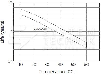- Срок хранения без подзаряда: 6 мес. при 25°C;