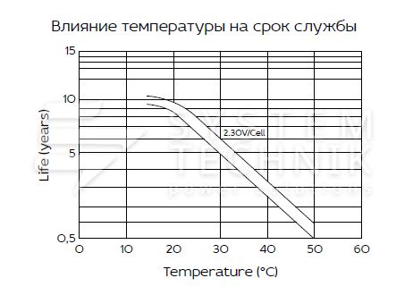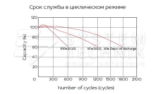 - Срок хранения без подзаряда: 6 мес. при 25°C;