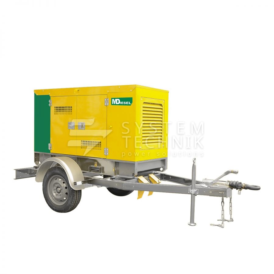 Дизельный генератор MitsuDiesel МД ЭД-20-Т400-1РКМ29 в шумозащитном кожухе на шасси на прицепе в Красноярске