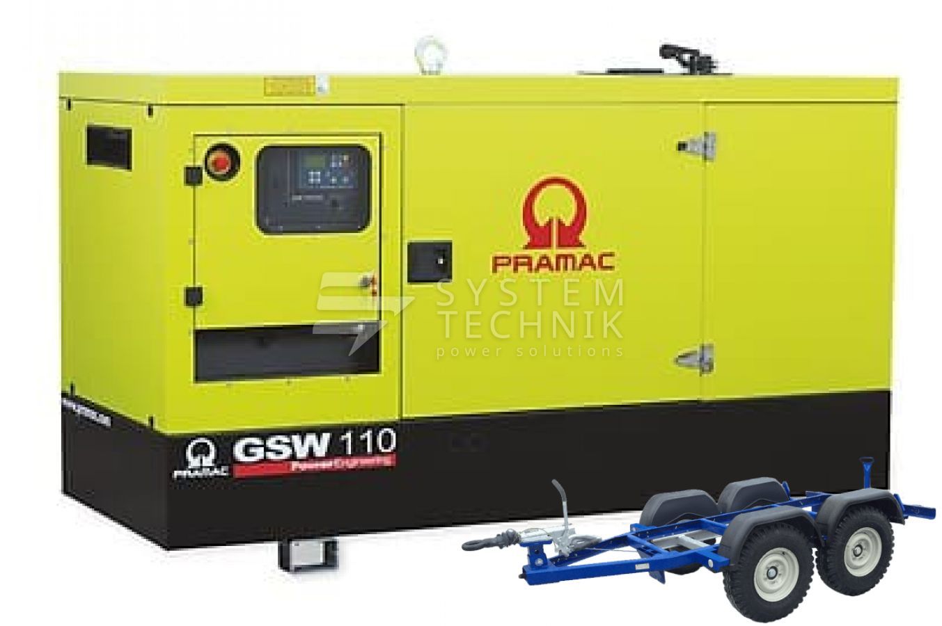 - Дизельный генератор Pramac GSW 110 P 440V В кожухе на прицепе