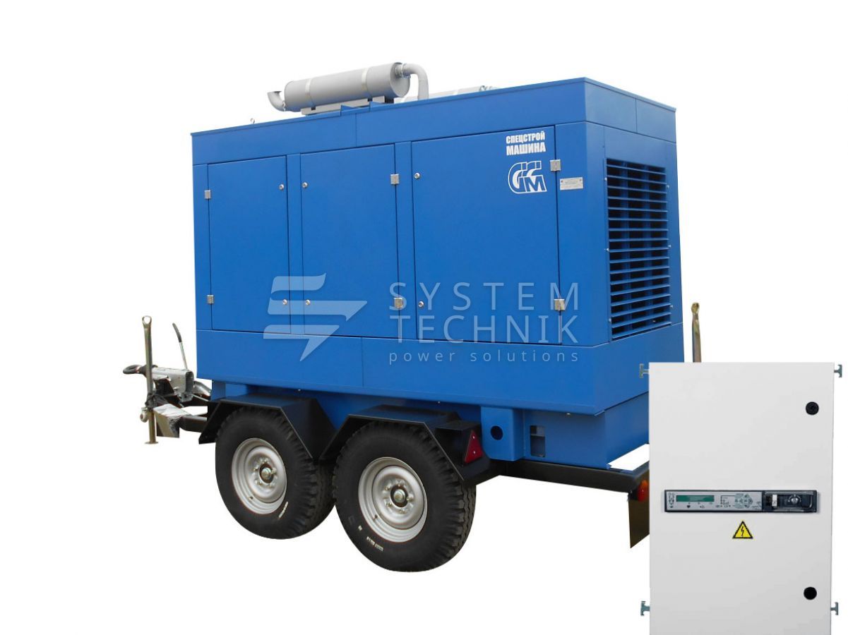 - ССМ ЭД-160-Т400-2РКМ2 в шумозащитном кожухе на шасси с АВР на прицепе